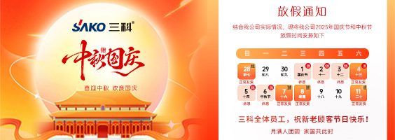 秋高氣爽,雙節(jié)同輝。值此中秋團(tuán)圓與國(guó)慶歡慶之際,SAKO三科全體員工提前祝您節(jié)日快樂(lè),闔家幸福,萬(wàn)事如意!